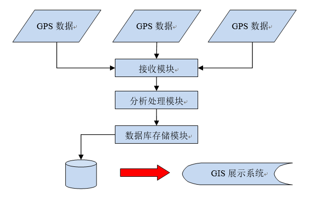 GPS數(shù)據(jù)接收存儲程序是整個GPS平臺的核心部分,數(shù)據(jù)接收和存儲的精確程度直接決定數(shù)據(jù)在GIS系統(tǒng)上的展現(xiàn)情況。因此該數(shù)據(jù)接收存儲程序需要同時處理上千甚至上萬條GPS終端報送的數(shù)據(jù),對程序的健壯性、穩(wěn)定性有很高的要求。系統(tǒng)設計中將采用成熟的多線程處理和滑動門技術進行設計,提高系統(tǒng)性能。GPS數(shù)據(jù)接收流程如下: